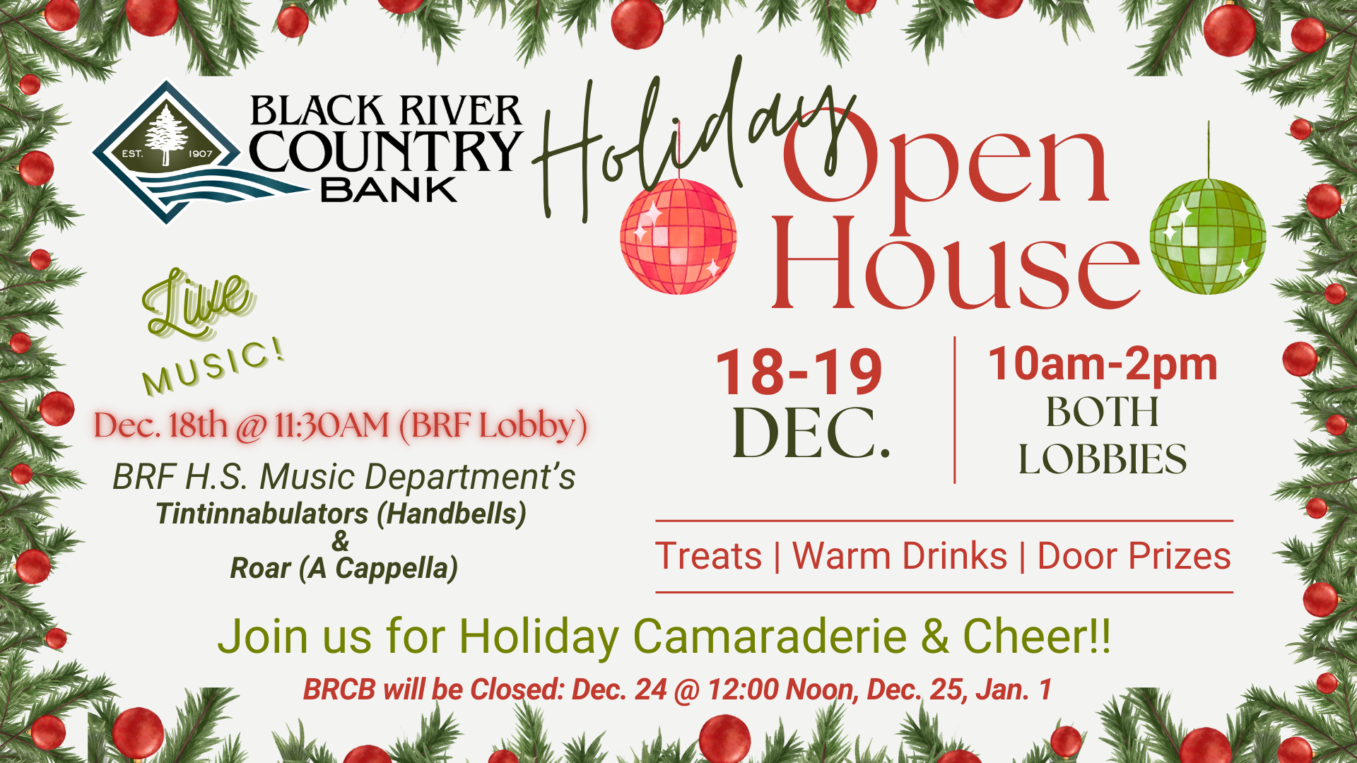 Christmas Day (Christmas Eve -- Closed at 12:00 Noon)
